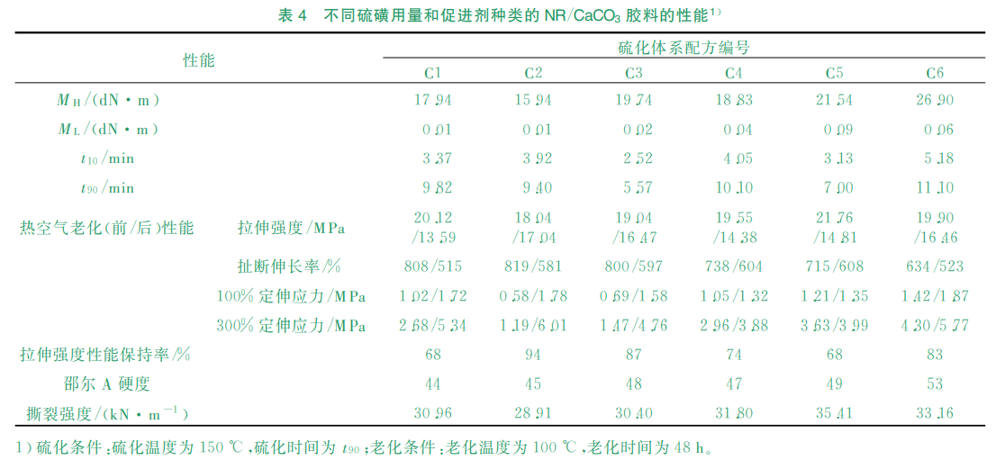 高硫高促硫化體系NR/CaCO3膠料的性能