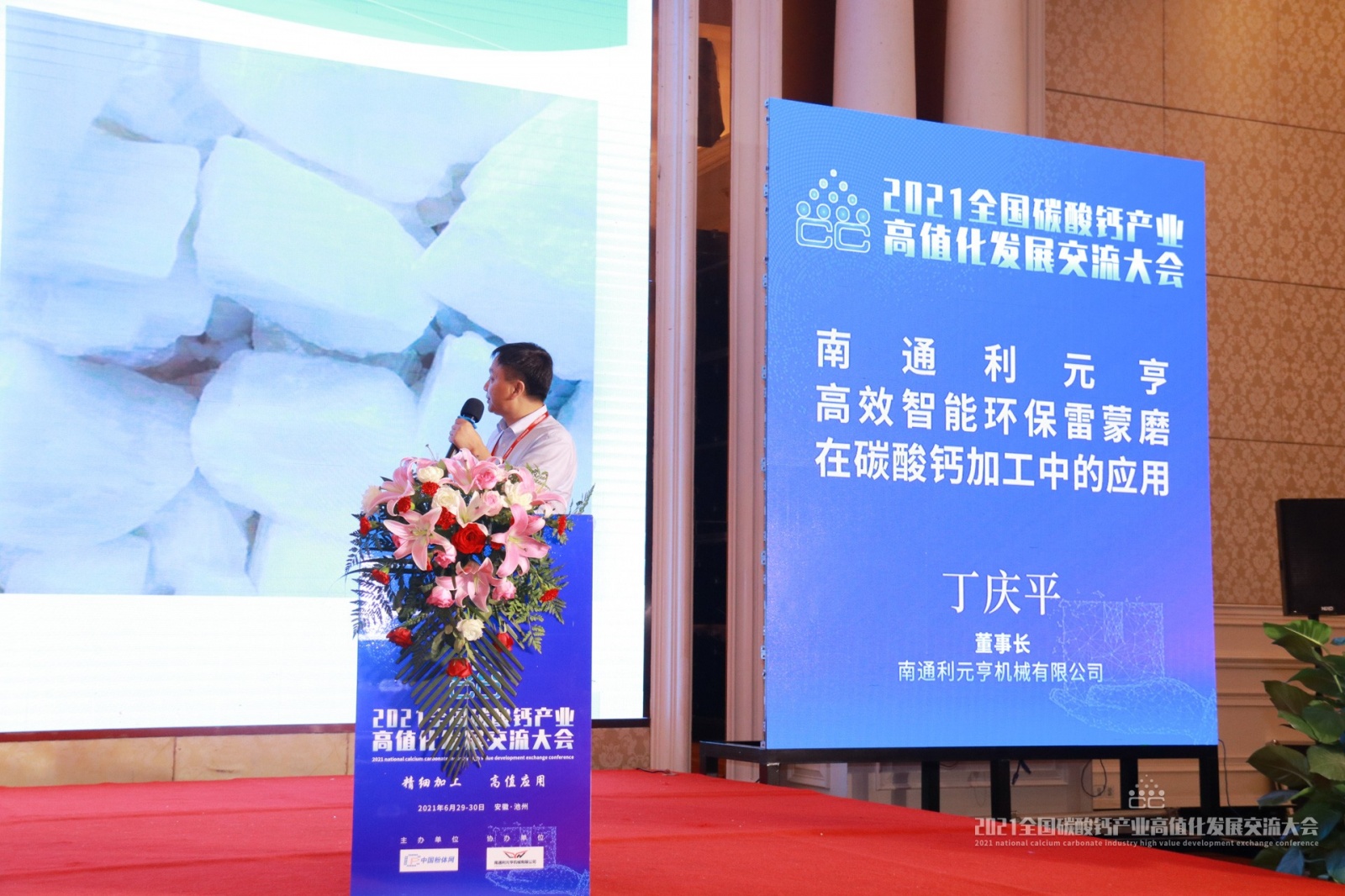在交流大會(huì)上,公司董事長(zhǎng)兼總經(jīng)理、技術(shù)總監(jiān),高級(jí)工程師丁慶平作了《南通利元亨機(jī)械有限公司及高效智能環(huán)保雷蒙磨推介》報(bào)告,詳細(xì)闡述南通利元亨高效智能環(huán)保雷蒙磨在碳酸鈣加工中的應(yīng)用。
