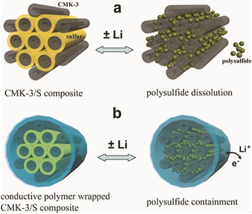導(dǎo)電聚合物包覆介孔碳-硫復(fù)合材料