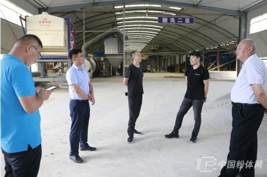 調(diào)研組一行與賈總在墨輝石英砂車間交流