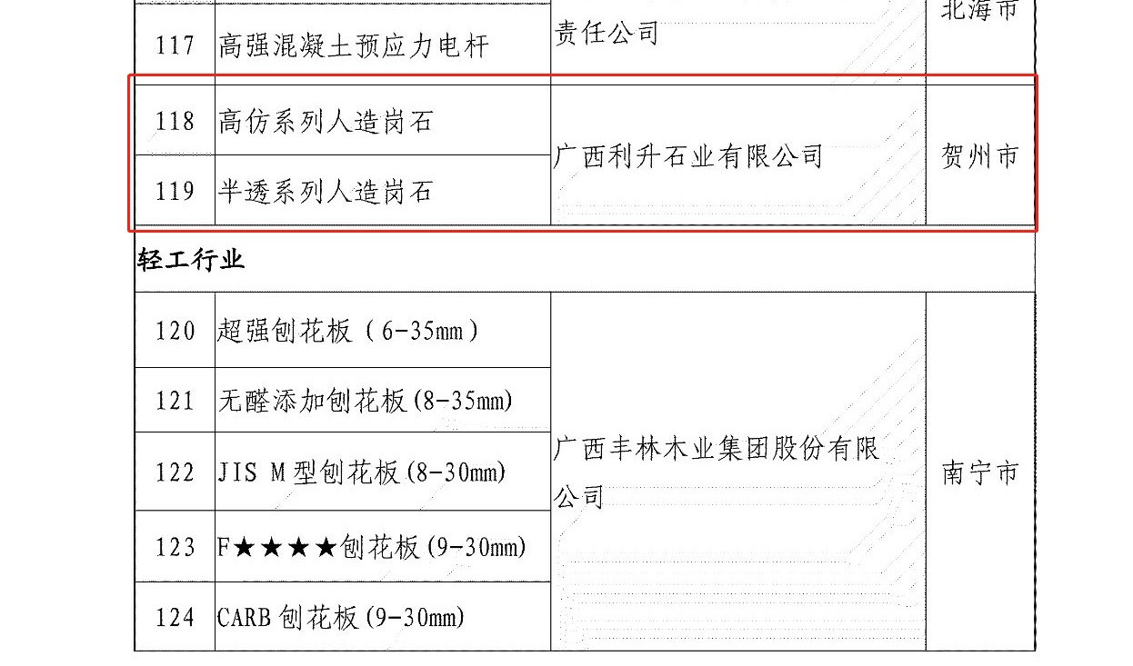 廣西利升石業(yè)兩款崗石產(chǎn)品入選“廣西名優(yōu)工業(yè)產(chǎn)品推薦目錄”