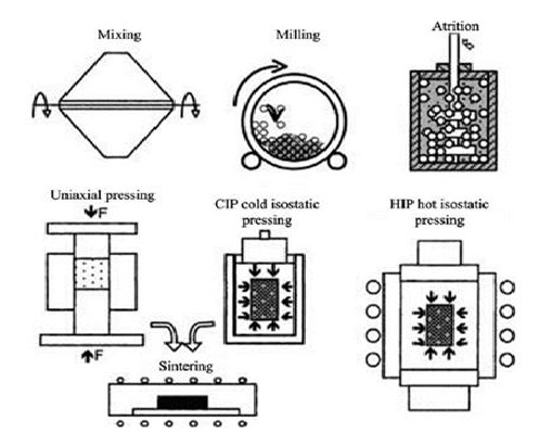 圖1 傳統(tǒng)的粉末冶金工藝流程示意圖