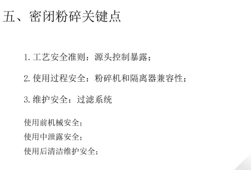 第二個(gè)是共性問題,粉碎工藝是最容易產(chǎn)塵的工藝步驟,密閉粉碎解決方案是當(dāng)前最迫切的需求。目前國(guó)內(nèi)大多數(shù)制藥企業(yè),粉碎投料多是暴露環(huán)境下的投料,用塑料袋收料,不能完全密封,尤其是折疊位置容易泄露,漏一點(diǎn)縫隙就會(huì)冒粉塵。對(duì)于有毒有活性產(chǎn)品來(lái)說(shuō),粉碎工藝的密閉性就顯得尤為重要。