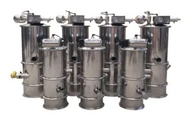 過(guò)濾器把物料與空氣徹底分離,當(dāng)物料裝滿(mǎn)料倉(cāng)時(shí),控制器會(huì)自動(dòng)切斷氣源,真空發(fā)生器停止工作,同時(shí)料倉(cāng)門(mén)自動(dòng)開(kāi)啟,物料落到設(shè)備的料斗中。與此同時(shí),壓縮空氣通過(guò)脈沖反吹閥自動(dòng)清洗過(guò)濾器。等到時(shí)間到或料位傳感器發(fā)出上料信號(hào)時(shí),自動(dòng)啟動(dòng)上料機(jī)。
