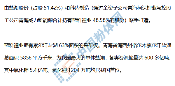 比亞迪(持股49%)與鹽湖股份(持股49.5%)共同成立了青海鹽湖比亞迪資源開發(fā)有限公司。