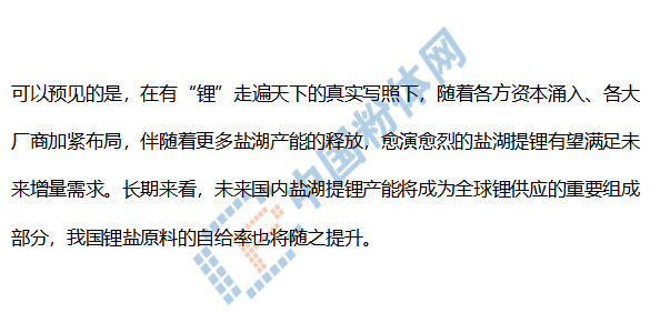 中國粉體網(wǎng)訊 近年來,伴隨著新能源汽車的發(fā)展,對鋰的需求越來越大。鋰作為新能源汽車行業(yè)發(fā)展的上游核心原材料供不應求。我國擁有豐富的鹽湖資源疊加鋰電上游原材料對外依賴度高,特別是中央明確提出加快建設世界級鹽湖產(chǎn)業(yè)基地,鹽湖提鋰迎來發(fā)展機遇期。隨著技術(shù)進步和政策鼓勵,鹽湖提鋰有望出現(xiàn)百花齊放、百家爭鳴的局面。