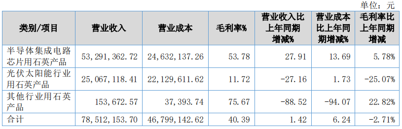 公司的主營業(yè)務(wù)是石英產(chǎn)品加工,報告期內(nèi)主要收入來源為半導(dǎo)體集成電路芯片用石英產(chǎn)品和光伏太陽能行業(yè)用石英產(chǎn)品的生產(chǎn)和銷售,且公司計劃將上述兩類產(chǎn)品作為未來業(yè)務(wù)的主要發(fā)展方向,因此,從中長期來看,上述兩類產(chǎn)品的銷售收入仍將為公司的主要收入來源。