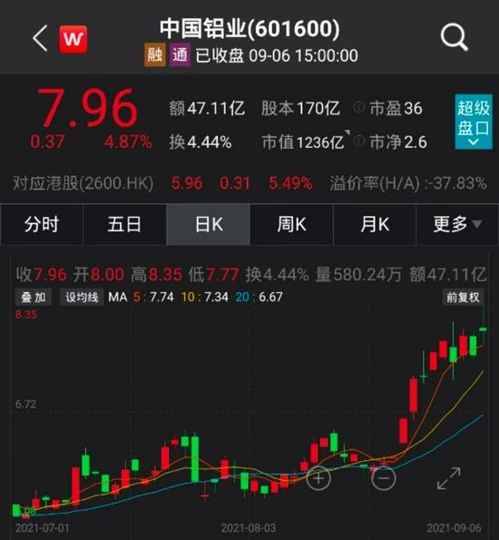 中國鋁業(yè)今日一度漲停,截至收盤漲4.87%。云鋁股份漲4.15%,天山鋁業(yè)漲4.97%,港股俄鋁大漲14.45%。