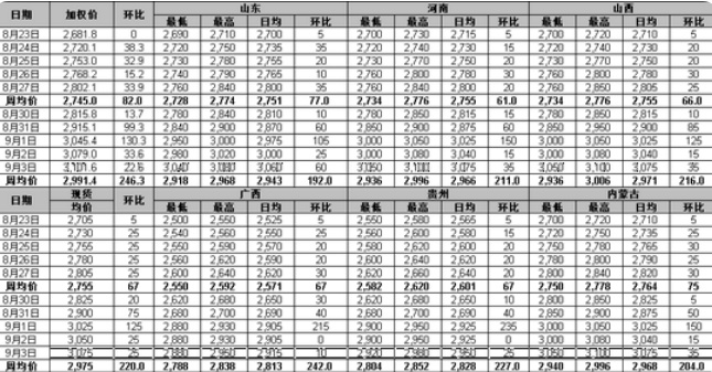 上海有色網(wǎng)數(shù)據(jù)顯示,9月6日,氧化鋁均價報3119元/噸,9月以來上漲7.6%。連云港、鲅魚圈兩地均價沖上3200元/噸。