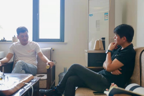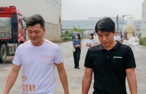 昌榮粉體張總(左)與宋總交流公司石英砂生產(chǎn)情況