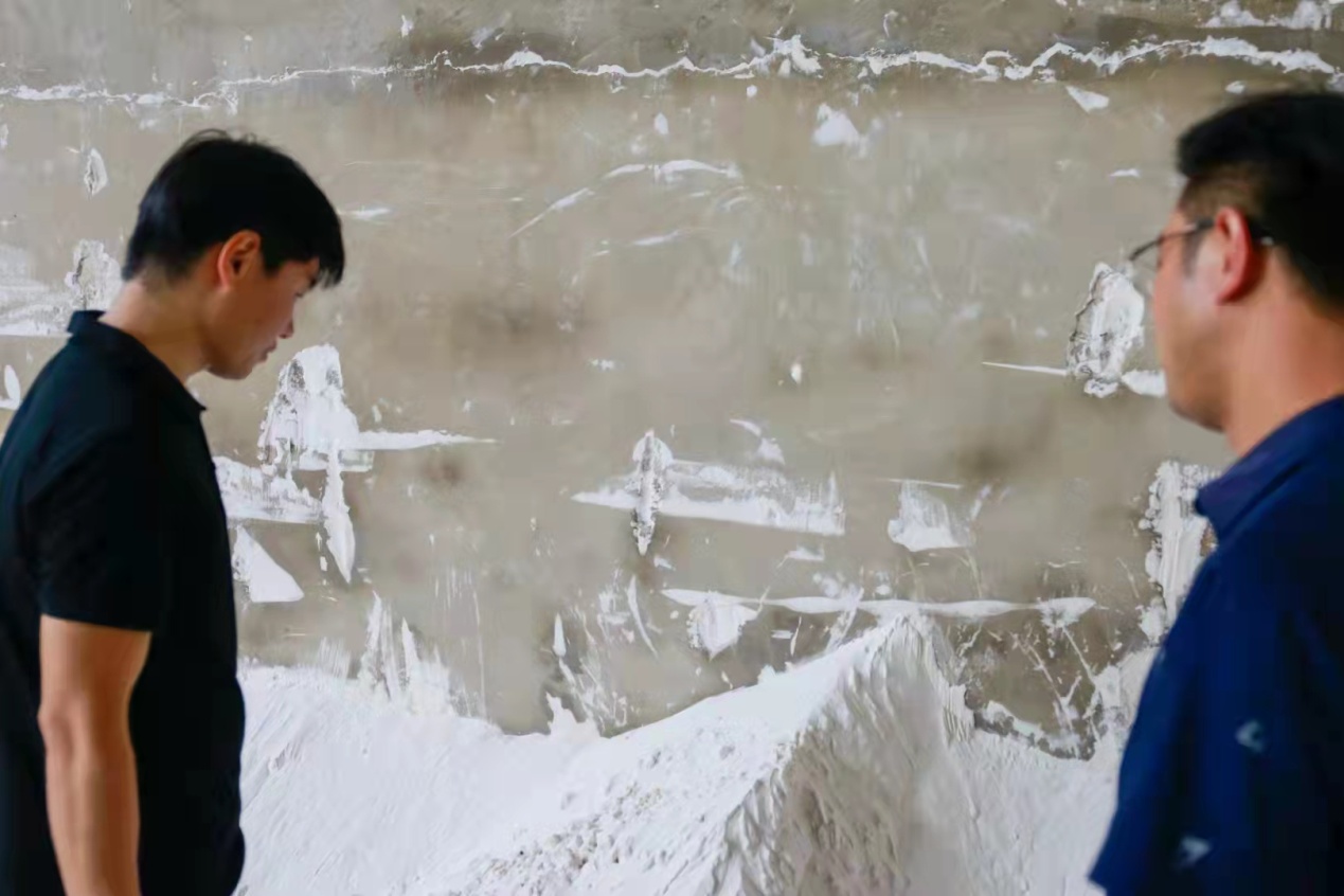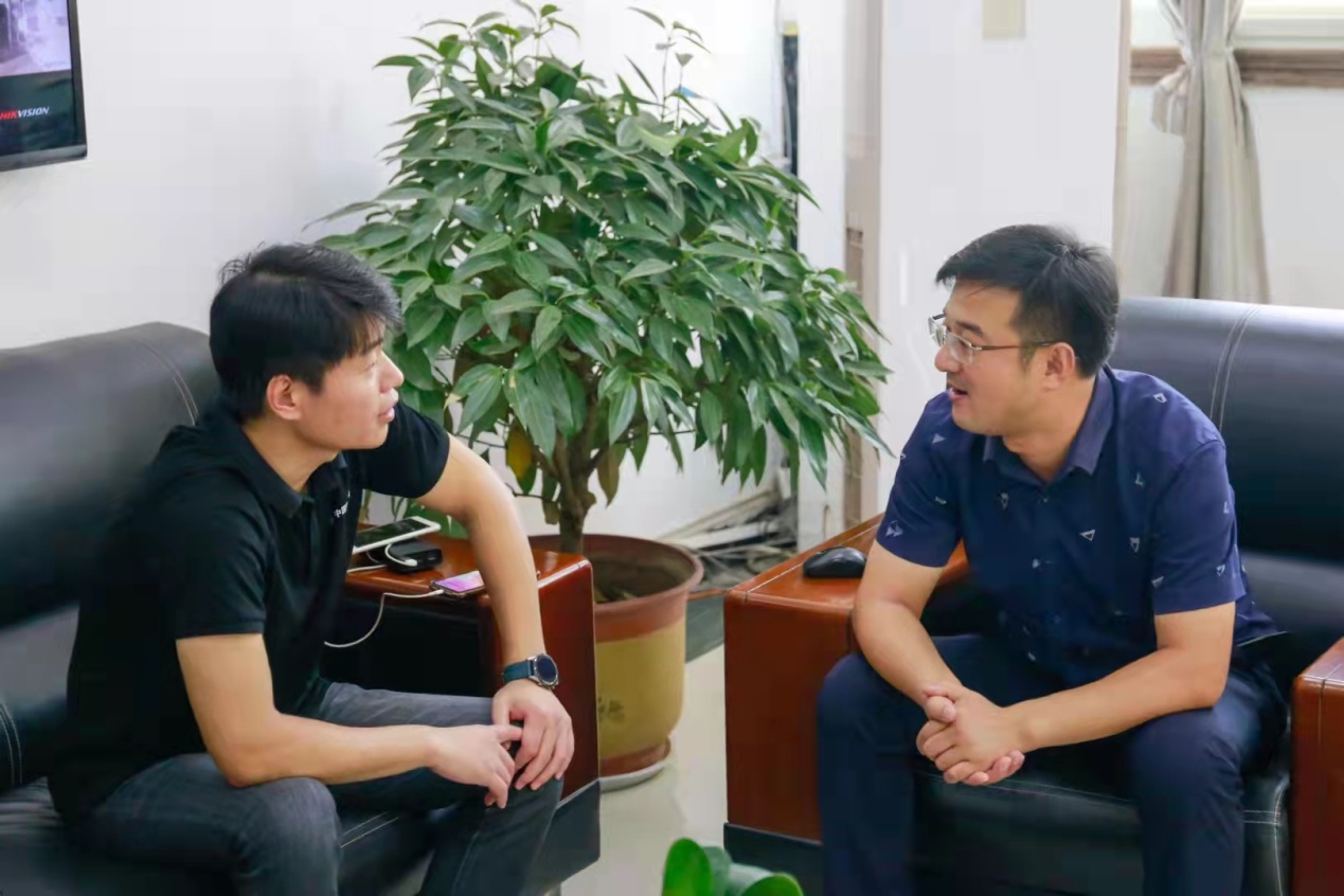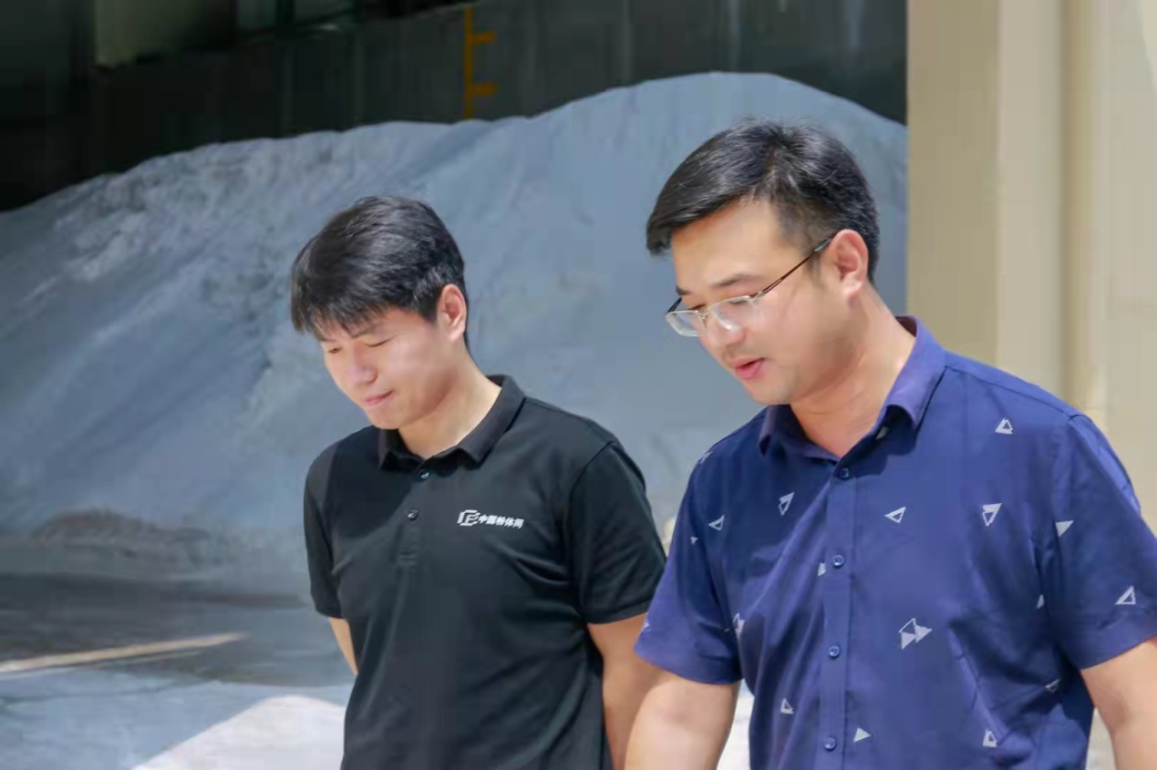 中國(guó)粉體網(wǎng)宋總(左)與杜氏礦業(yè)王總(右)交流鳳陽(yáng)石英砂市場(chǎng)行情