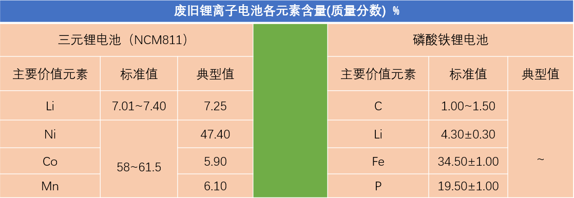 ▲廢舊鋰離子電池各元素含量(質(zhì)量分?jǐn)?shù)) %