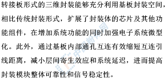 轉(zhuǎn)接板技術(shù)作為一種新型三維封裝模式下的大規(guī)模集成電路應(yīng)用技術(shù),逐漸成為備受關(guān)注的高密度模塊集成封裝技術(shù)。其結(jié)構(gòu)是指在有機(jī)或無機(jī)等基板的適當(dāng)位置利用不同加工工藝實(shí)現(xiàn)高深寬比垂直通孔,垂直通孔內(nèi)可進(jìn)行不同材質(zhì)的填充,整體可看作利用通孔垂直互連的封裝體,實(shí)現(xiàn)了芯片與芯片之間、芯片與基板之間、基板與基板之間不同間距的輸入輸出端口互連,完成芯片與圓片、芯片與芯片之間垂直互連,進(jìn)而實(shí)現(xiàn)封裝體在垂直方向上的擴(kuò)展,促進(jìn)系統(tǒng)模塊的小型化和異質(zhì)集成度。