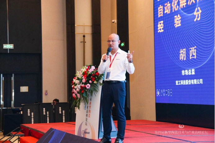宏工科技股份有限公司的市場總監(jiān)胡西作《工業(yè)陶瓷粉料生產(chǎn)的自動化解決方案及經(jīng)驗分享》報告