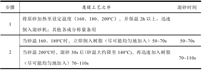覆膜砂由于其良好的流動(dòng)性以及砂芯表面質(zhì)量好等優(yōu)良性能,而被廣泛應(yīng)用于鑄造生產(chǎn)領(lǐng)域。隨著快速成型技術(shù)在無(wú)模直接制造方面的快速發(fā)展,雖然覆膜砂作為燒結(jié)材料在快速成型各種復(fù)雜形狀的砂型(芯)方面取得了突破性進(jìn)展,但是覆膜砂的制備過(guò)程中仍存在某些不可控的因素,導(dǎo)致覆膜砂制件的性能達(dá)不到技術(shù)要求。因此,很多研究者為了進(jìn)一步提高覆膜砂性能,一直致力于對(duì)覆膜砂原材料的成分配比以及覆膜砂的制備工藝的深入研究。