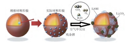 ▲三元材料暴露在空氣中后表面結(jié)構(gòu)變化(圖片來源:安富強等.純電動車用鋰離子電池發(fā)展現(xiàn)狀與研究進展)