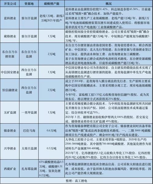 從國(guó)內(nèi)鹽湖提鋰市場(chǎng)情況看,由于高原地區(qū)的生產(chǎn)環(huán)境惡劣、提取技術(shù)水平要求高、前期投入成本高,國(guó)內(nèi)布局鹽湖提鋰規(guī);髽I(yè)主要集中在藍(lán)科鋰業(yè)、藏格控股、東臺(tái)吉乃爾鋰資源/青海鋰業(yè)、恒信融鋰業(yè)、五礦鹽湖、錦泰鋰業(yè)、興華鋰業(yè)、西藏礦業(yè)等少數(shù)企業(yè)布局。