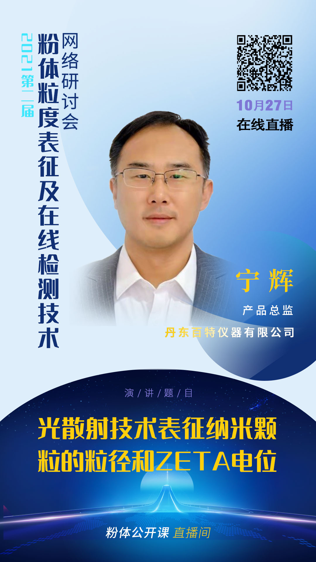 2021年10月27日,中國(guó)粉體網(wǎng)旗下粉體公開(kāi)課平臺(tái)邀請(qǐng)到丹東百特儀器有限公司的產(chǎn)品總監(jiān)寧輝先生作《光散射技術(shù)表征納米顆粒的粒徑和Zeta電位》報(bào)告。在本報(bào)告中,寧總將詳細(xì)介紹BeNanoZeta納米粒度電位儀,這種儀器采用丹東百特公司的動(dòng)態(tài)光散射技術(shù)和電泳光散射技術(shù),能夠表征典型的納米顆粒的粒徑和Zeta電位,提供不同環(huán)境下顆粒的穩(wěn)定性信息。