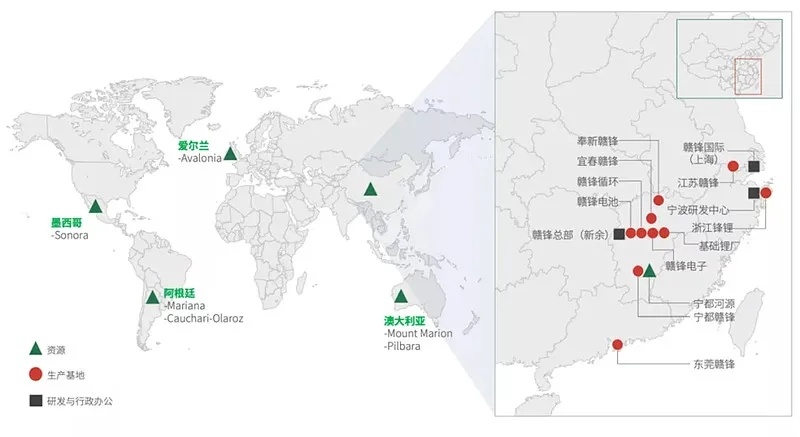 贛鋒鋰業(yè)按目前在全球范圍內直接或間接擁有的鋰資源如下: