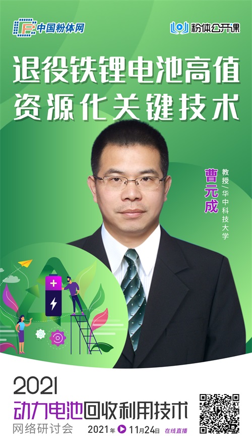 為破解廢舊磷酸鐵鋰電池回收難題,中國粉體網(wǎng)旗下粉體公開課平臺將于2021年11月24日舉辦“2021動力電池回收利用技術(shù)網(wǎng)絡(luò)研討會”,屆時(shí)來自華中科技大學(xué)的曹元成教授將作《退役鐵鋰電池高值資源化關(guān)鍵技術(shù)》報(bào)告,報(bào)告人將立足于實(shí)現(xiàn)低價(jià)值退役磷酸鐵鋰電池活性物質(zhì)物理修復(fù)與再生技術(shù)研究,突破回收處理技術(shù)的高污染、高成本限制,降低退役鋰電池環(huán)境污染風(fēng)險(xiǎn),攻克失效材料低成本綠色再生修復(fù)新途徑。通過高比例的資源利用與低成本回收技術(shù),降低儲能電池的全產(chǎn)業(yè)鏈生產(chǎn)成本,實(shí)現(xiàn)高比例、高純度活性物質(zhì)回收成套裝備的設(shè)計(jì)開發(fā)與樣機(jī)工程化驗(yàn)證;最后實(shí)現(xiàn)活性物質(zhì)綠色修復(fù)再生技術(shù)開發(fā)及產(chǎn)業(yè)化。