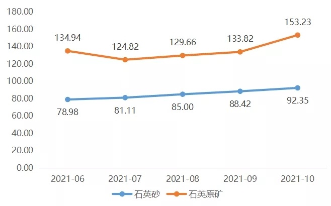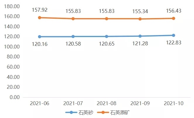 石英砂、石英原礦價格走勢圖
