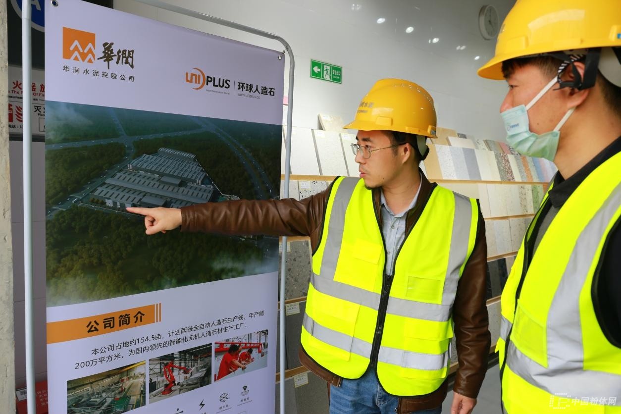 (圖:環(huán)球石材郭總為中國(guó)粉體網(wǎng)宋總講解公司發(fā)展概況)