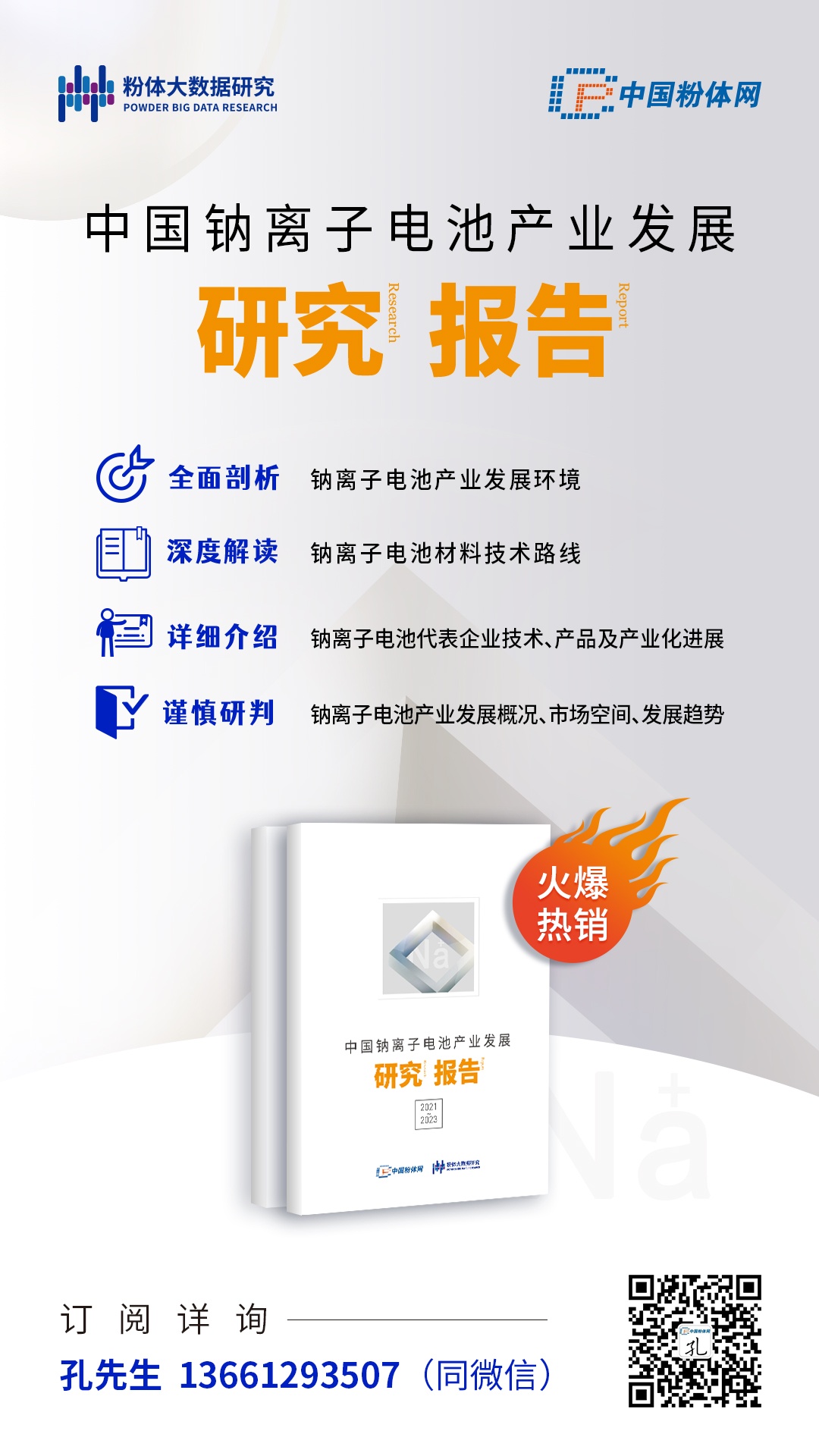 為幫助企業(yè)全面系統(tǒng)了解新興的鈉離子電池技術(shù)與產(chǎn)業(yè)發(fā)展現(xiàn)狀,發(fā)現(xiàn)市場(chǎng)投資機(jī)會(huì),把握產(chǎn)業(yè)未來(lái)發(fā)展趨勢(shì),粉體大數(shù)據(jù)研究通過(guò)對(duì)全國(guó)主要鈉離子電池研發(fā)企業(yè)、鈉電鋰電材料企業(yè)進(jìn)行調(diào)查,結(jié)合鈉離子電池行業(yè)領(lǐng)軍人物的演講及院士專家的觀點(diǎn),收集大量的產(chǎn)業(yè)數(shù)據(jù)、權(quán)威報(bào)道和技術(shù)文獻(xiàn)資料等,推出《中國(guó)鈉 離子電池產(chǎn)業(yè)發(fā)展研究報(bào)告(2021-2023)》。