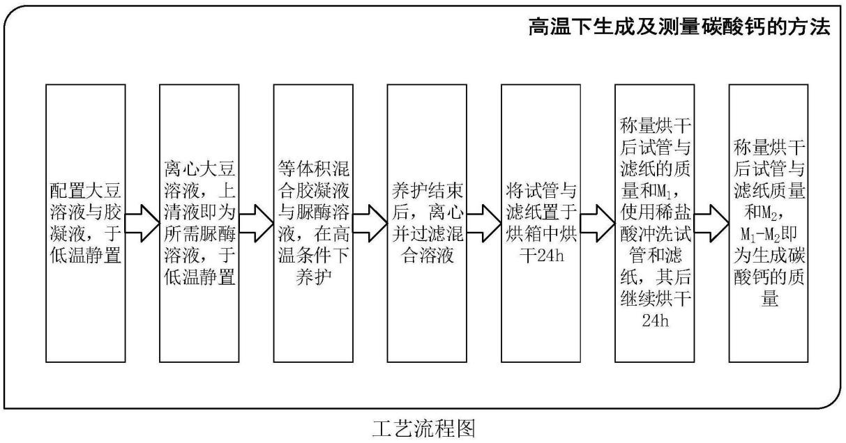 摘要:本發(fā)明使用大豆溶液中的脲酶促進碳酸鈣的生成,選擇尿素與氯化鈣作為膠凝液,將大豆溶液與膠凝液混合,在高溫條件下培養(yǎng)后,對混合液離心、烘干、酸洗、再烘干,得出生成碳酸鈣的質(zhì)量,從而得出不同溫度下的最佳大豆溶液濃度,確定適宜反應溫度。該方法操作容易,碳酸鈣產(chǎn)率高且經(jīng)濟高效。