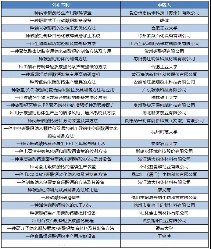除此之外,還有很多企業(yè)、科研機構(gòu)公布了碳酸鈣相關專利。