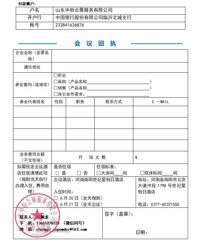 要求:參會報名須需填寫參會回執(zhí)單等資料發(fā)微信或郵件回傳。