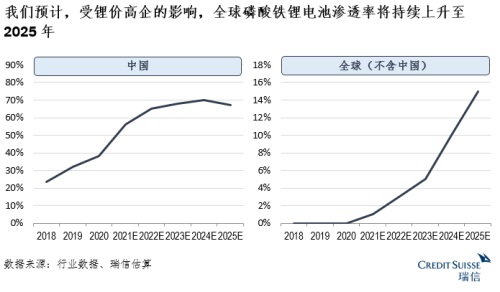 面對車企的“偏好”變化,業(yè)界對磷酸鐵鋰電池的未來預期頗為樂觀。到2025年,預計磷酸鐵鋰電池在中國的市場份額將達到67%(2020年為38%),在全球(不含中國)的市場份額將達到15%(2020年為0%)。