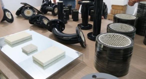 而耐磨、耐高溫、耐酸堿腐蝕正是先進陶瓷的特長。先進陶瓷材料以其優(yōu)良的性能使之在工業(yè)設(shè)備及管道上的應(yīng)用越來越廣泛,除了石油天然氣管道外,在燃煤電廠輸煤管道、水泥廠選粉系統(tǒng)管道等領(lǐng)域的應(yīng)用也相當(dāng)普遍。通過對普通金屬材料的替代,使管道的使用壽命、連續(xù)生產(chǎn)能力等方面都有了極大的提高,F(xiàn)在國內(nèi)外工程陶瓷領(lǐng)域的耐磨陶瓷部件多為氧化鋁、氧化鋯、碳化硅、氮化硅等材質(zhì),其中應(yīng)用最廣泛的當(dāng)屬氧化鋁陶瓷。