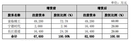 公告稱,寧德時(shí)代擬進(jìn)一步對(duì)江西升華增資,認(rèn)購目標(biāo)公司增加的相同金額的注冊資本1.44億元,本次增資完成后,寧德時(shí)代將持有目標(biāo)公司20%的股權(quán),目標(biāo)公司注冊資本將增加至8.2億元。