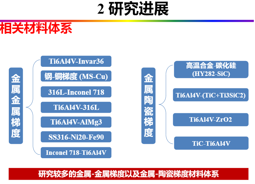 接下來,馬老師詳細(xì)講述了功能梯度材料(主要是金屬-金屬梯度材料、金屬-陶瓷梯度材料)的研究進(jìn)展。