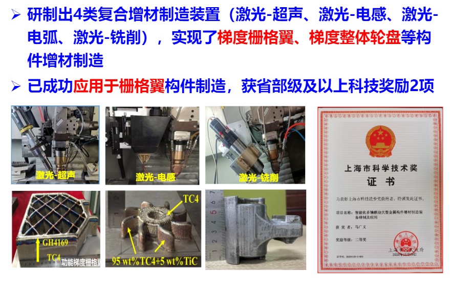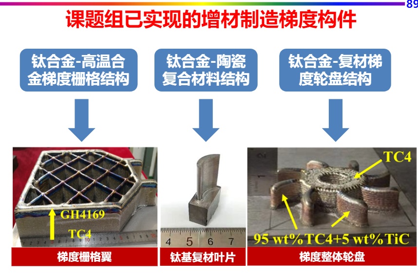 最后,馬老師分析了功能梯度材料在航空航天領(lǐng)域、醫(yī)療領(lǐng)域、汽車制造領(lǐng)域、機(jī)械制造領(lǐng)域的應(yīng)用。并總結(jié)了其課題組已經(jīng)實(shí)現(xiàn)的增材制造梯度構(gòu)件。