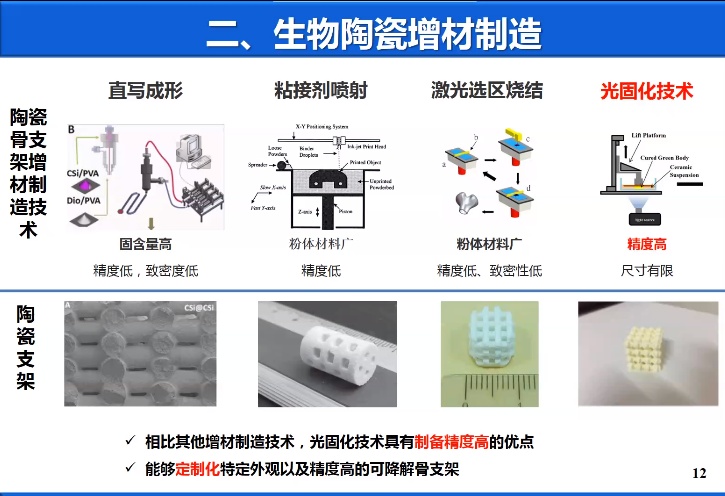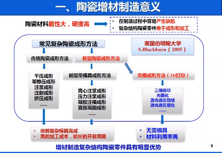 接下來,吳老師介紹了陶瓷增材制造的意義,并分析了陶瓷增材制造的特點(diǎn)和其常見的成型方法。