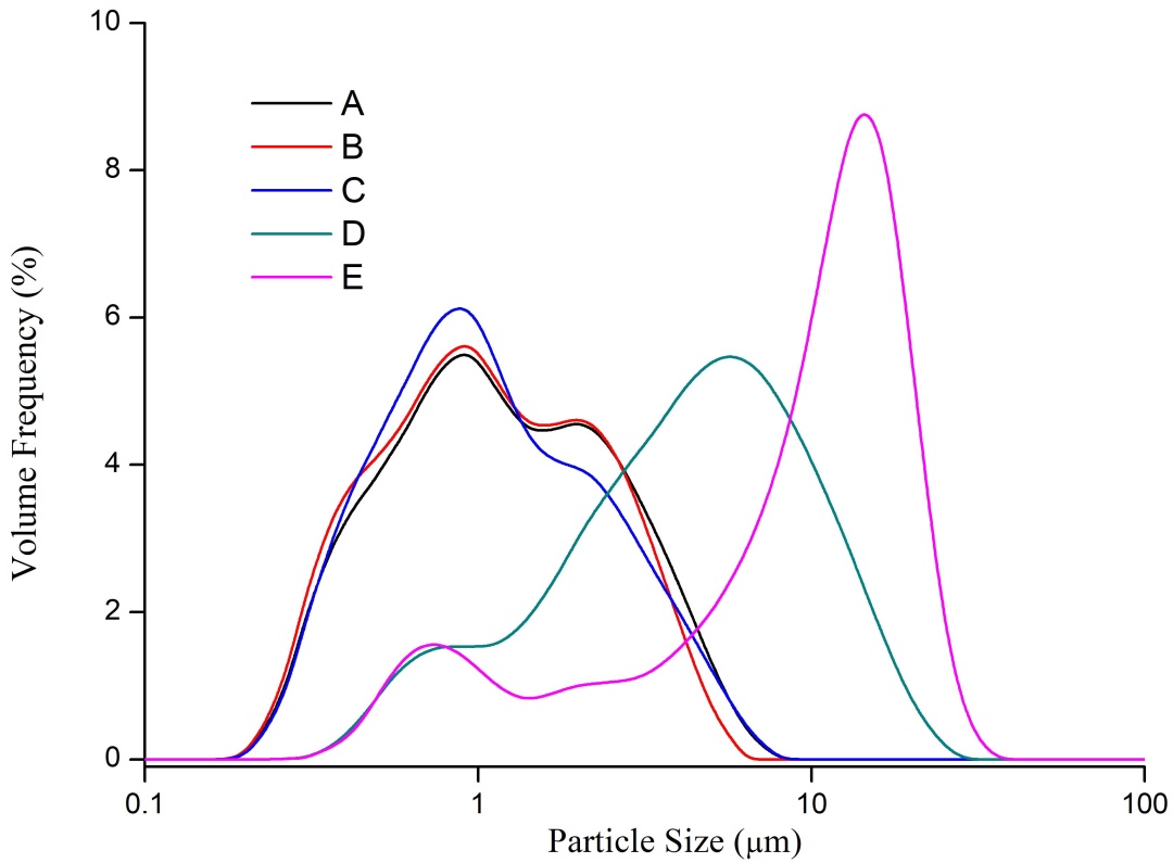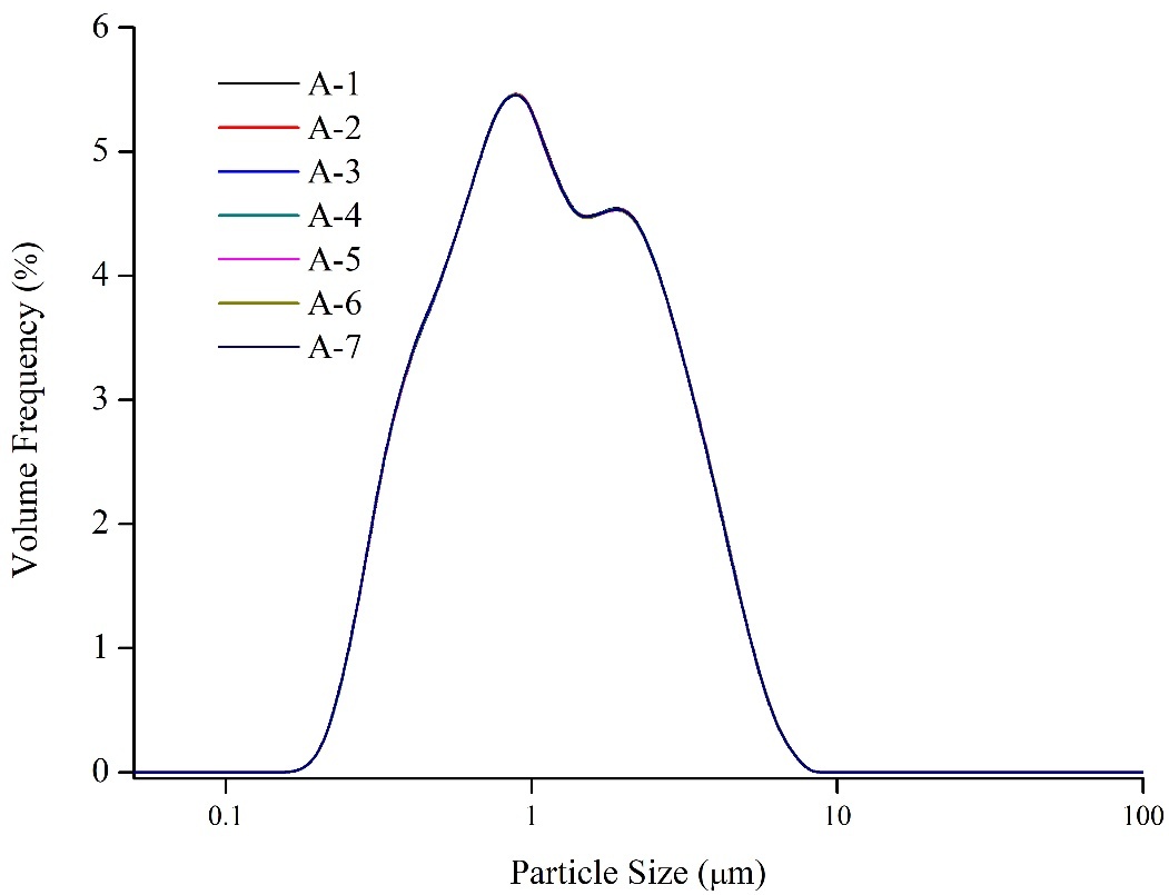 常用的鋰離子電池正極材料有磷酸鐵鋰、鈷酸鋰、碳酸鋰和高鎳三元材料等,它們的粒徑分布是影響電池性能的關(guān)鍵因素,其粒度分布可優(yōu)化鋰電池的能量和功率。百特實(shí)驗(yàn)室采用Bettersize2600激光粒度儀檢測了5種磷酸鐵鋰樣品,它們的粒度分布如下: