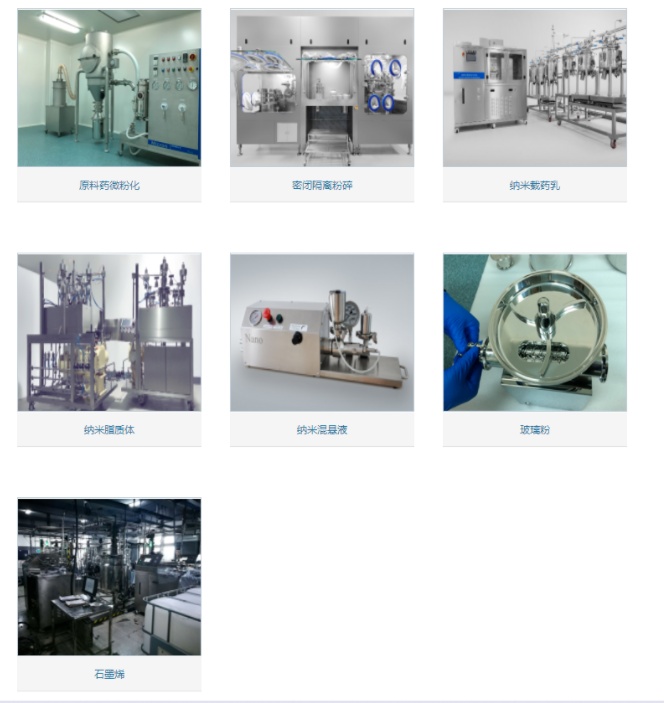 位于上海松江工業(yè)園區(qū)的總部技術(shù)中心建有符合GMP標(biāo)準(zhǔn)潔凈化車間,配備有微射流均質(zhì)機(jī),超微粉氣流粉碎及脂質(zhì)體擠出器等國(guó)際先進(jìn)的納微米粉碎和檢測(cè)設(shè)備。可對(duì)外提供脂肪乳、脂質(zhì)體、納米混懸液、原料藥超微粉從研發(fā)到中試、生產(chǎn)型設(shè)備以及相關(guān)輔助設(shè)備的培訓(xùn)、租賃服務(wù)。