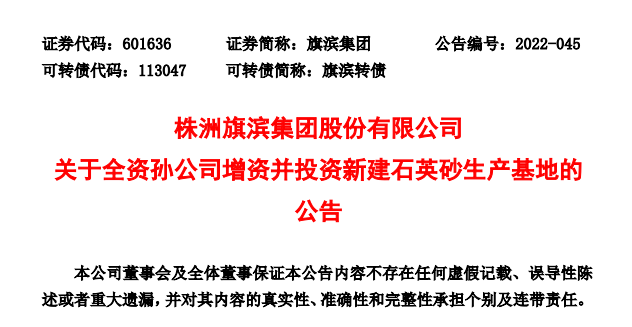 中國粉體網(wǎng)訊 4月7日,旗濱集團(tuán)(601636.SH)公布公告稱,為加快公司光伏產(chǎn)業(yè)布局,進(jìn)一步延伸產(chǎn)業(yè)鏈,提升旗濱集團(tuán)在玻璃全產(chǎn)業(yè)鏈上的綜合競爭力,確保旗濱集團(tuán)昭通光伏玻璃生產(chǎn)基地的用砂需求和供應(yīng)安全,根據(jù)國家產(chǎn)業(yè)導(dǎo)向,結(jié)合旗濱集團(tuán)戰(zhàn)略發(fā)展規(guī)劃,旗濱集團(tuán)擬在云南省昭通市投資配套建設(shè)石英砂生產(chǎn)基地。