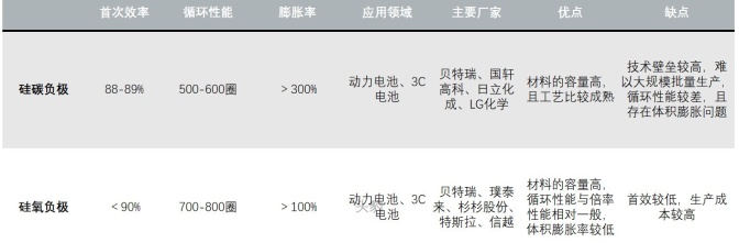 硅碳負極與硅氧負極對比(資料來源:頭豹研究院)