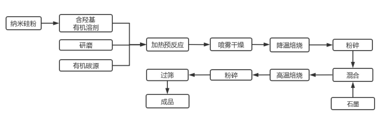 以上硅基負極兩條路線的工序主要分為兩大部分,一是硅材料的處理,二是與碳材料復(fù)合。