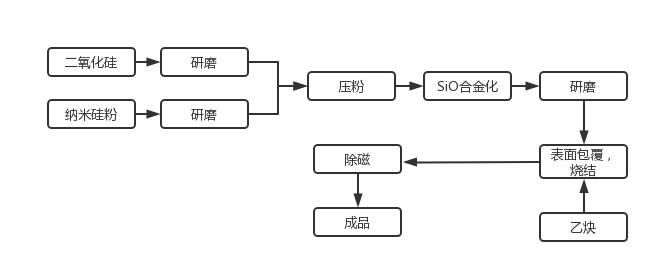 兩種材料的制備有類似之處,工序上都包含球磨、碳包覆、造粒,不同之處為硅碳復(fù)合材料需經(jīng)過兩次球磨再加入石墨負極,而硅氧復(fù)合材料是一次球磨,但其重點在于用氧化亞硅制備。