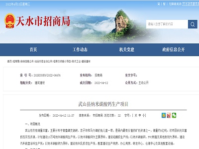 武山石灰?guī)r儲(chǔ)量豐富,主要分布于鴛鴦鎮(zhèn)支鍋峽、吉子坪和馬力鎮(zhèn)的兔兒崖一帶,是縣內(nèi)最有價(jià)值的礦石資源之一,儲(chǔ)量約5億噸。該項(xiàng)目依托豐富的石灰石資源,計(jì)劃建設(shè)10萬(wàn)噸納米碳酸鈣生產(chǎn)線(xiàn),以納米碳酸鈣為主要原料,建設(shè)硅酮膠生產(chǎn)線(xiàn);以納米碳酸鈣、PVC樹(shù)脂及其他助劑為原料,建設(shè)汽車(chē)底盤(pán)涂料生產(chǎn)線(xiàn);以納米碳酸鈣為原料,建設(shè)納米乳膠漆生產(chǎn)線(xiàn),配套建設(shè)生產(chǎn)用房、辦公用房、研發(fā)中心、倉(cāng)儲(chǔ)中心及其他配套設(shè)施。