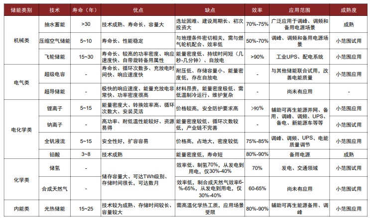 各類儲(chǔ)能優(yōu)劣對(duì)比(圖片來(lái)源:中國(guó)知網(wǎng)、中金公司)