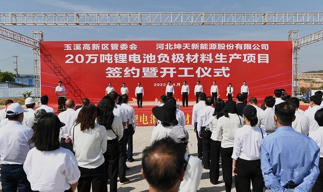 中國粉體網(wǎng)訊 4月25日,玉溪市高新區(qū)管委會與河北坤天新能源股份有限公司就20萬噸鋰電池負(fù)極材料生產(chǎn)項目進行簽約,并舉行項目開工儀式。