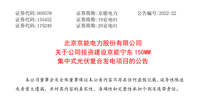 京能寧東 150MW 集中式復(fù)合發(fā)電項(xiàng)目(以下簡(jiǎn)稱“寧東光伏項(xiàng)目”)由公司全資子公司寧東新能源負(fù)責(zé)建設(shè)管理。寧東新能源公司注冊(cè)地址為寧夏寧東能源化工基地臨河工業(yè)園區(qū),法定代表人為師開(kāi)革。