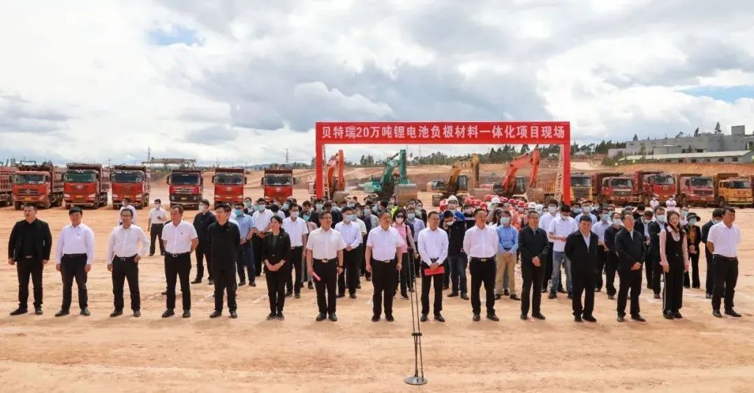 儀式上,云南貝特瑞年產(chǎn)20萬(wàn)噸鋰電池負(fù)極材料一體化基地項(xiàng)目同步開(kāi)工。
