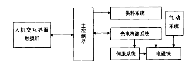 石英砂色選機(jī)工作前通過(guò)觸摸屏設(shè)定石英砂的分選參數(shù)。在分選過(guò)程中石英砂通過(guò)進(jìn)料口均勻地鋪在傳送帶上并保證石英砂表面都能夠被光電檢測(cè)系統(tǒng)檢測(cè)到,通過(guò)傳送帶的轉(zhuǎn)動(dòng)使石英砂以恒定的速度經(jīng)過(guò)光電檢測(cè)系統(tǒng)。光電檢測(cè)系統(tǒng)在特制燈光的照射下,由傳感器對(duì)經(jīng)過(guò)的物料進(jìn)行動(dòng)態(tài)掃描,將掃描的模擬視頻電壓進(jìn)行A/D轉(zhuǎn)換,得到的數(shù)字視頻信號(hào)經(jīng)過(guò)識(shí)別處理,由伺服控制程序模塊輸出伺服控制信號(hào)和執(zhí)行器驅(qū)動(dòng)信號(hào),使雜質(zhì)經(jīng)過(guò)伺服系統(tǒng)時(shí)正好讓執(zhí)行器運(yùn)動(dòng)到對(duì)應(yīng)位置并產(chǎn)生執(zhí)行器驅(qū)動(dòng)信號(hào),執(zhí)行器上的吸管和氣動(dòng)裝置相連,雜質(zhì)就會(huì)被執(zhí)行器上的吸管吸走,剩下的物料落入集料槽,從而達(dá)到分選的目的。