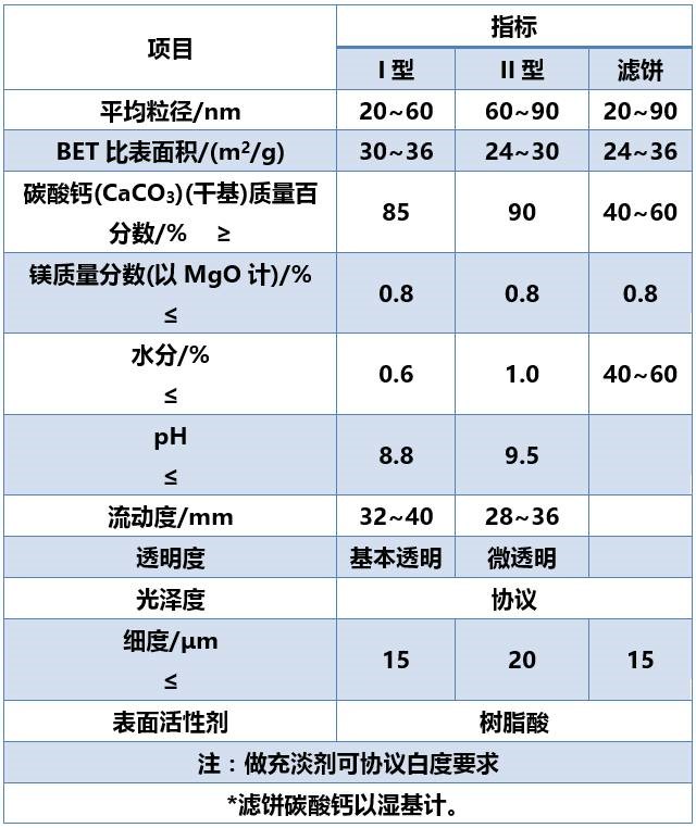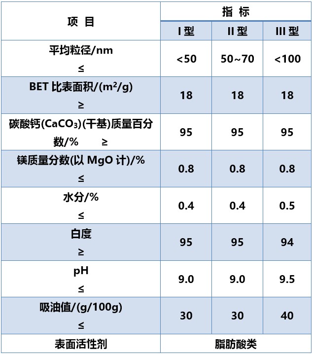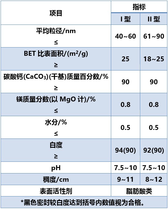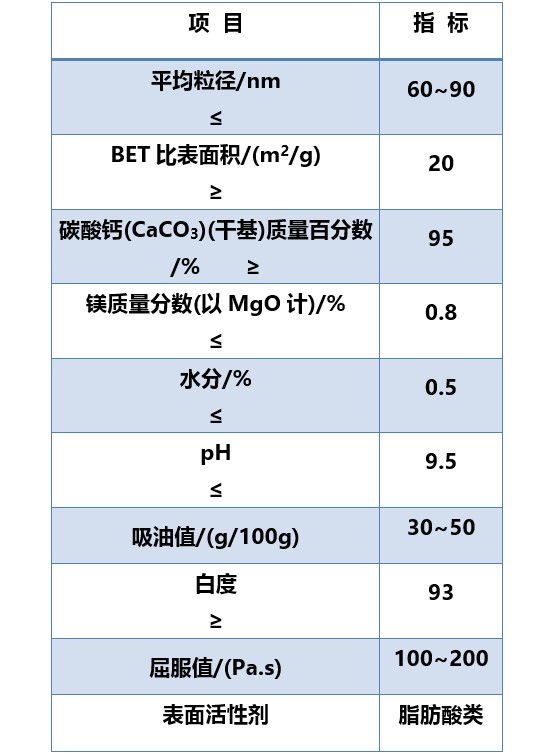 表Ⅴ涂料用納米碳酸鈣薦指標