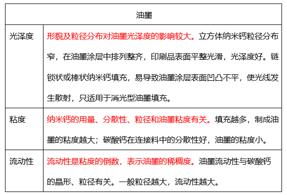 表Ⅳ膠印油墨用納米碳酸鈣推薦指標